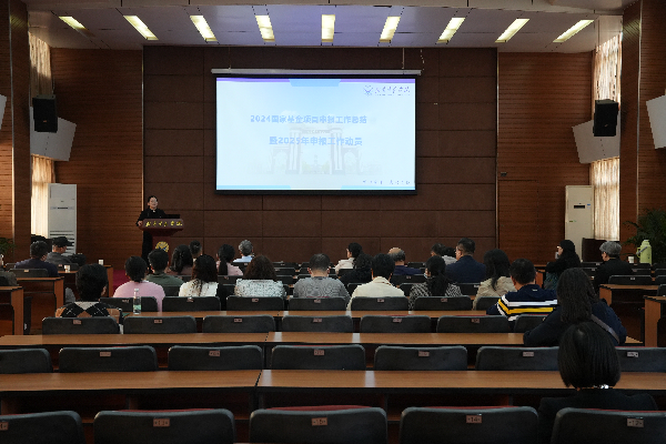 胡容玲介绍我校2024年度国家基金项目申报基本情况和申报经验。学校一直高度重视国家基金项目申报,严格执行申报激励政策文件,邀请10多位专家做申报辅导报告,请专家对申报项目多次做一对一辅导,学院在过程管理方面实施较好,科技处注重进度推进、策划组织和骨干申报人员的逐一跟进,项目申报人认真对待,坚持不懈。她同时分析了存在的问题,提出对应解决办法,并对2025年度国家基金项目申报工作作了具体安排。
